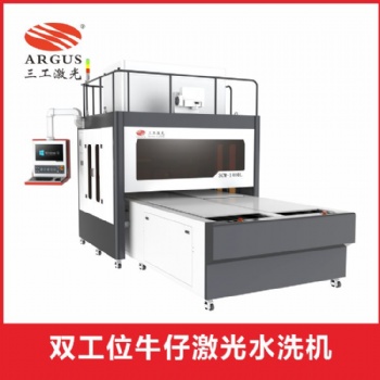 武汉三工 双工位牛仔服装面料激光水洗机