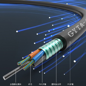 GYTA 光缆的结构是将 250μm 光纤套入高模量材料制成的松套管中,松套管内填充防水化合物。缆芯的中心是一根金属加强芯,对于某些芯数的光缆来说,金..