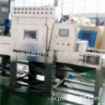 适用砂料:氧化铝,金钢砂.玻璃珠,核桃砂,树脂砂.细号钢丸,钢砂,不锈钢丸,铝丸等。深圳百创生产各种喷砂设备、转盘式喷砂机是自动喷砂机其中一款专业..