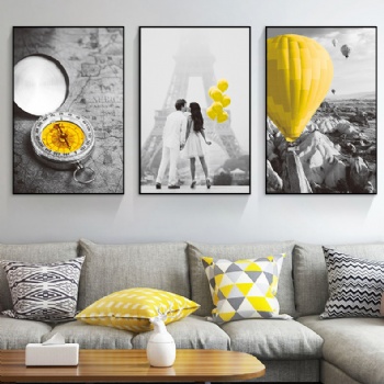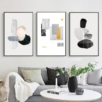 北欧客厅装饰画沙发背景墙三联组画现代简约黑白风墙壁装饰画