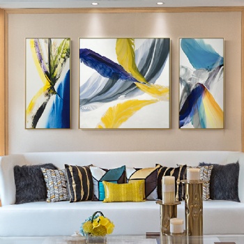 客厅沙发背景墙装饰画现代简约抽象壁画轻奢大气三联晶瓷画