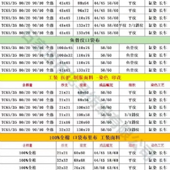 配棉:TC65/35 纱支:45*45 密度:110*76 幅宽:58/59‘..