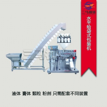 产品名称:全自动给袋式颗粒包装机 产品介绍:济南三马机械该款全自动水给袋式包..